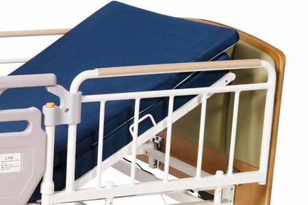 為了減輕坐輪椅的人員或者看護人員的負(fù)擔(dān)可 以自由升降。只要操作手控器來控制床的高度可 以實現(xiàn)25cm~61cm的無級升降調(diào)節(jié)。
